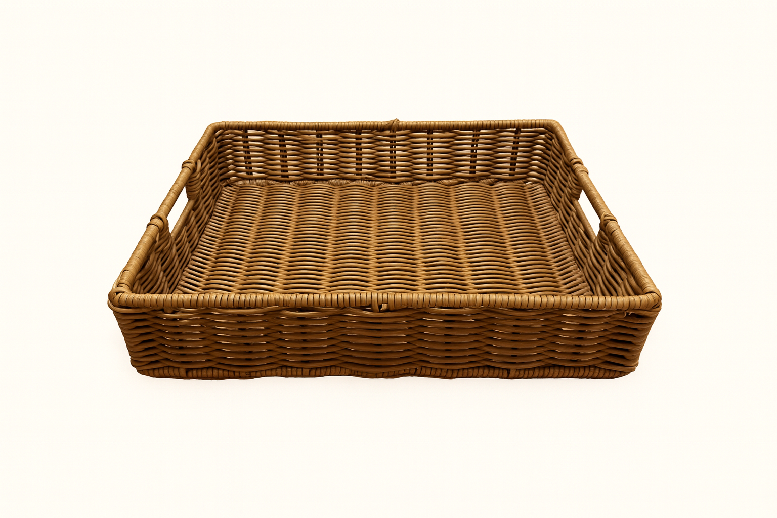 Fabricado artesanalmente em vime sintético, o modelo combina resistência com um acabamento impecável. Sua estrutura reforçada garante estabilidade mesmo quando carregado com louças, enquanto o material é leve, fácil de higienizar, não absorve umidade e se mantém intacto mesmo com uso frequente.